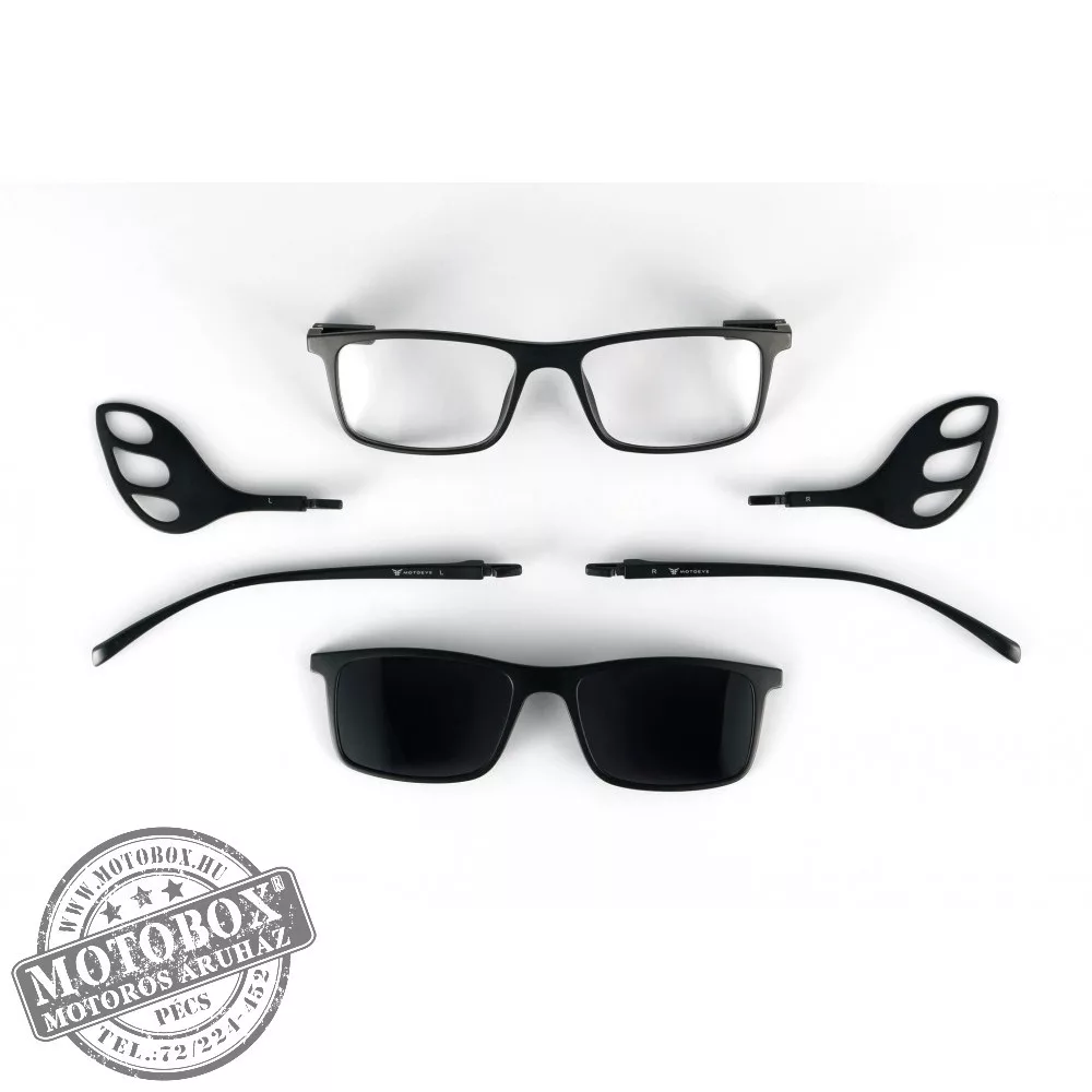 Szemüvegkeret sisakos szárral + utcai szár + Clip-On MOTOEYE H0007-C1 Fekete, Fekete
